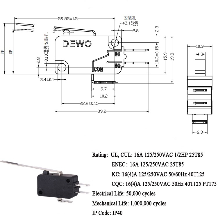 Terminal type:187 quick connect terminal/250 quick connect / Solder terminal/ left side PCB terminal/ right side PCB terminal/ Screw terminal