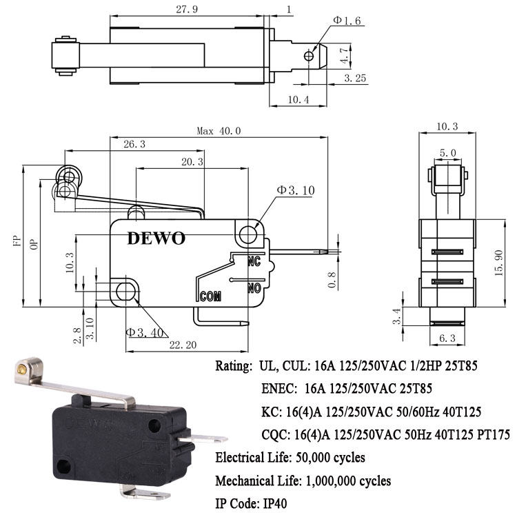 Terminal type:187 quick connect terminal/250 quick connect / Solder terminal/ left side PCB terminal/ right side PCB terminal/ Screw terminal