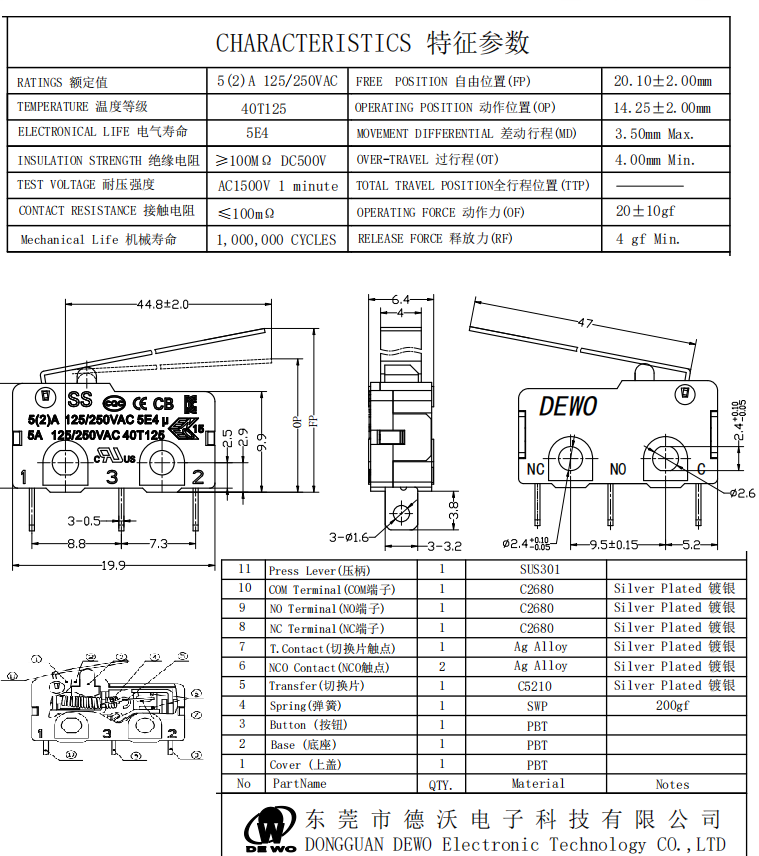 - DV micro switch