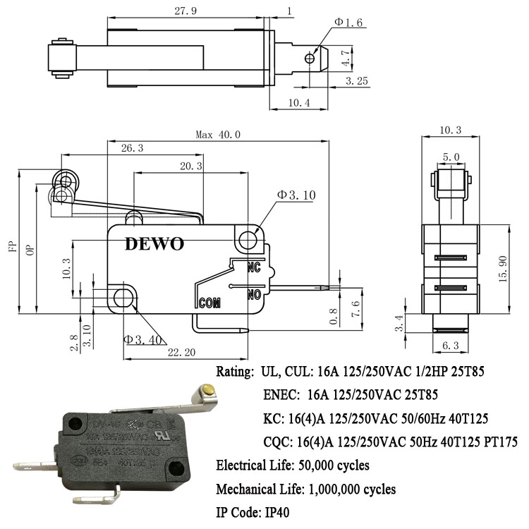 DV-16-A06-NN3-100E型微動開關