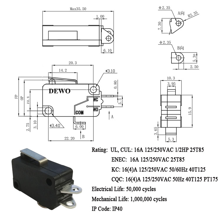 DV-16-A01-AA1-200E型微動(dòng)開關(guān)