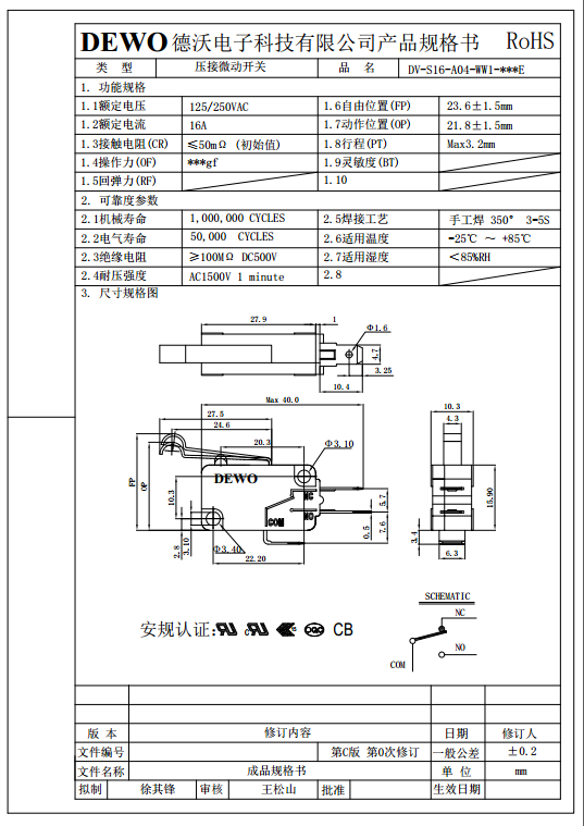 DV-16-A04-WW1-100E型微動(dòng)開關(guān)