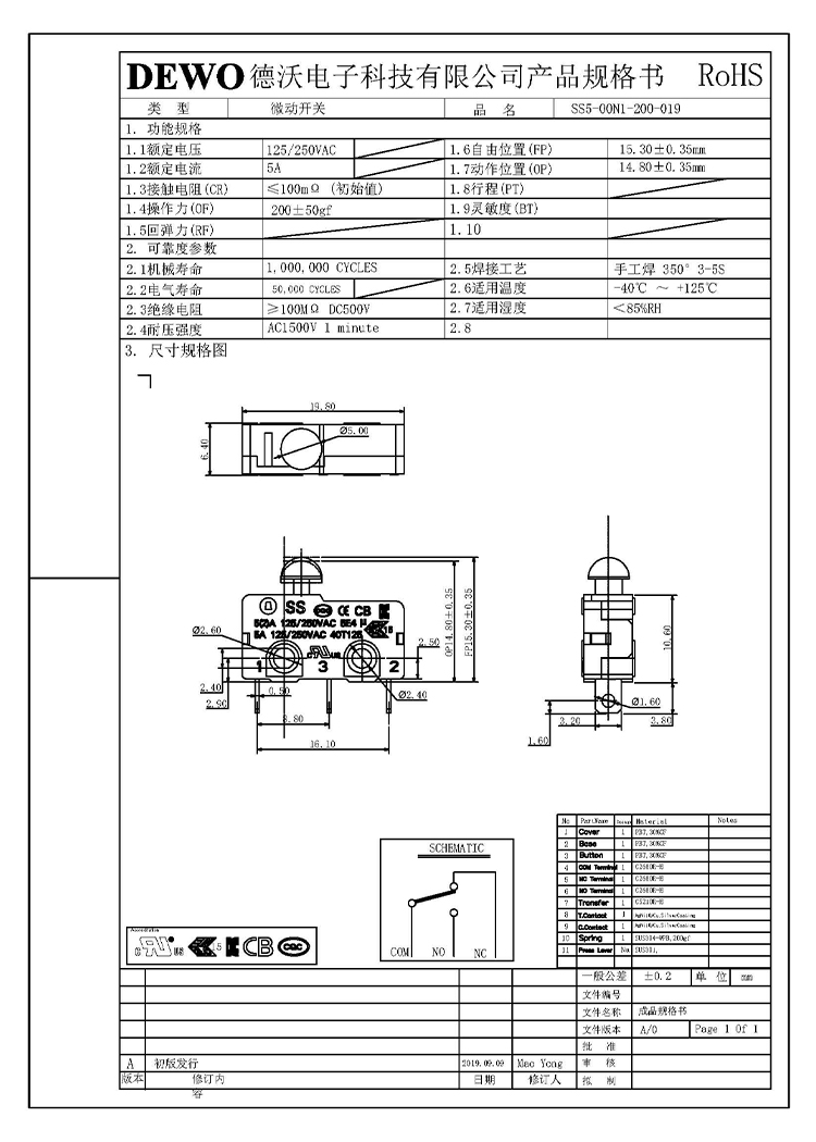 SS5-00N1-200(019)蘑菇頭微動(dòng)開關(guān)