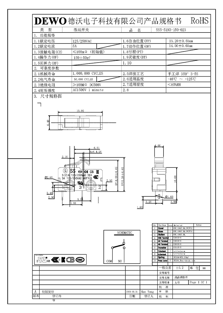 - DV型微動開關(guān)