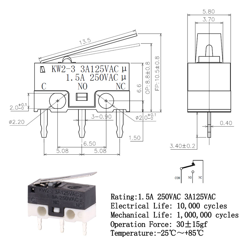 KW2-3-01P-30-5小型微動(dòng)開關(guān)