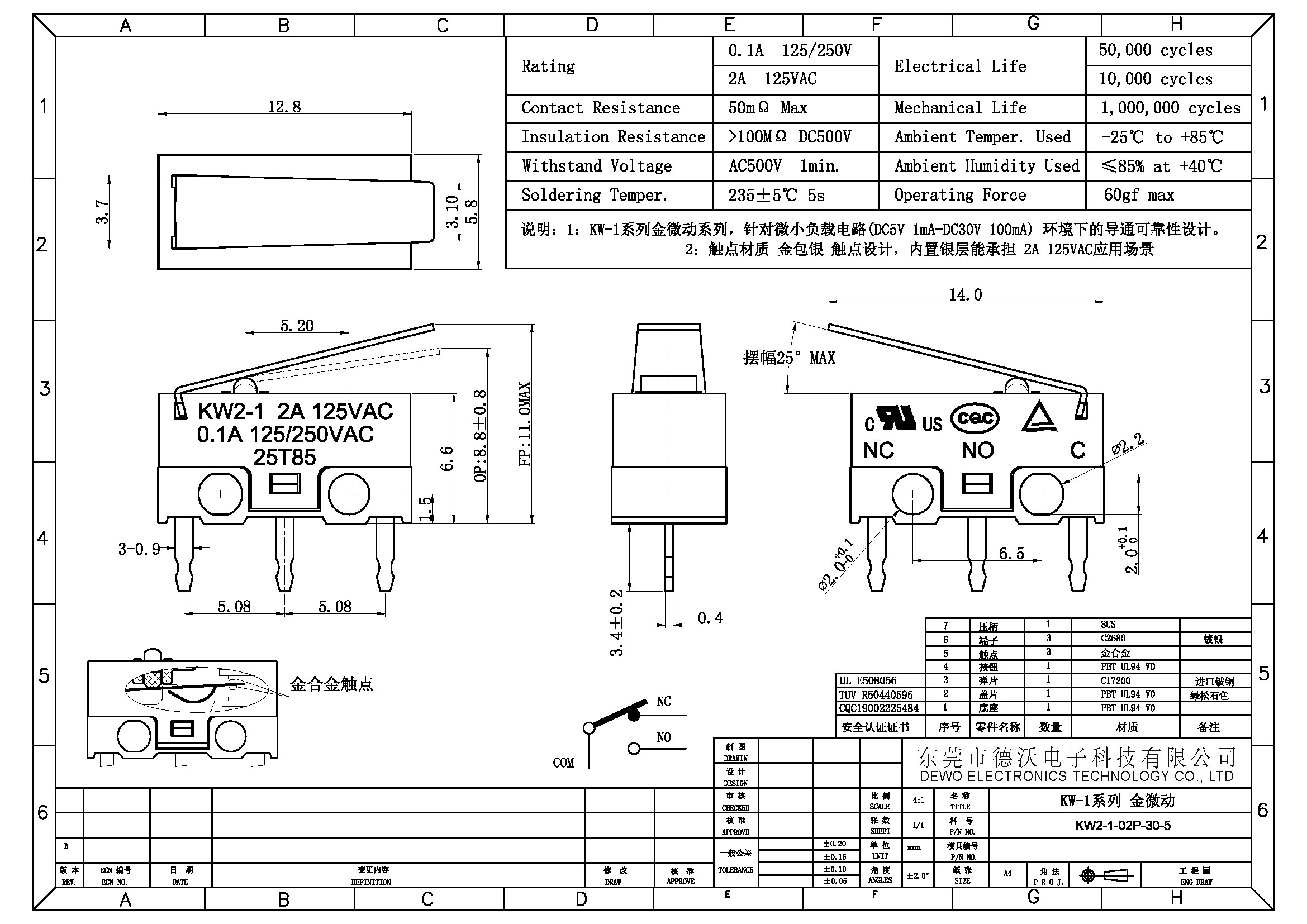 KW2-1-02P-30-5小型微動(dòng)開關(guān)